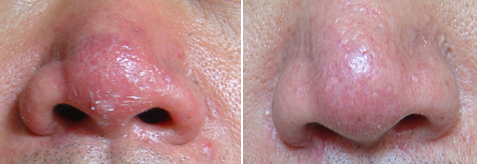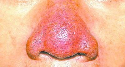 1、影响患者外观形象。酒糟鼻红斑、丘疹、脓疱等皮肤损害,在很大程度上影响患者外观形象;