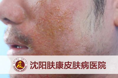 沈阳肤康医院皮肤科专家组梁绍滢副院长说:“他这个病叫特应性皮炎,一般我们叫异位性皮炎,很典型的,他第一次来是5月19号,脸上皮肤粗糙,糜烂渗出,结黄痂,皮肤干,皮肤薄,奇痒无比,抓了以后流黄水,然后结成黄色的痂皮。他主要就是脸上厉害,身上都还可以。”